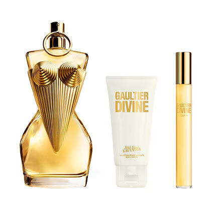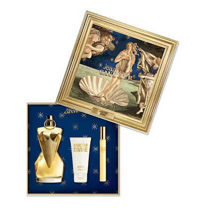 For the festive season, Jean Paul Gaultier has cheekily reinterpreted a Renaissance jewel for his gold framed Gaultier Divine gift set. In a visionary stroke of genius, Botticellis Venus becomes a modern icon of women. Dressed in her corset, she is charismatically solar, confident and always divinely true to herself. To celebrate this free and liberated femininity, experience this lily fragrance with gourmand notes and its matching satiny body lotion and travel mini. What could be more divine than this precious gift? Recommended use Just like a modern day Venus, spray this divine fragrance on your wrists, dab a little behind your ears, and finish with a spritz above your hair. Like you, the festivities promise to be ravishing! EDP Benefits Gaultier’s parties have found their muse! This fragrance will transform you into a divinely inspiring icon who’s as solar as a lily. With its gourmand floral scent and hint of salty iodine, you're ready to take on the world. Lait, Recommended use Before donning your divine corset, apply this shimmering body lotion paying particular attention to your decollete! In these festive times, celebrate the gourmand, floral notes of this fragrance. Lait, Benefits This subtly shimmering moisturising lotion gives your skin a soft dewy glow. Caress your skin with its floral lily and meringue notes. Can you think of a more divine way to celebrate your femininity?