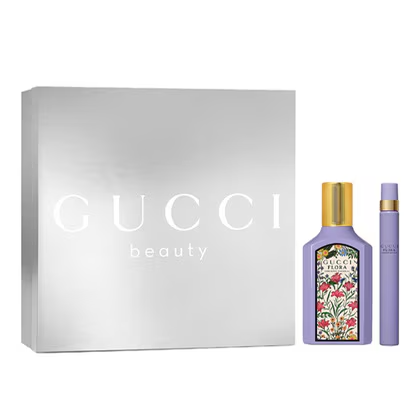 Share Love, Gucci Beauty Gift. Celebrate the festive season with this Gucci Flora Gorgeous Magnolia Giftset for women. An invitation to free your fantasies with confidence, Gucci Flora Gorgeous Magnolia Eau de Parfum transports you to a world of radiant floral power, the soft and sensual scents of Magnolia Essence, Dewberries Accord, and Patchouli Essence combine to create an empowered women's Eau de Parfum. This delightful fragrance is a unique bouquet full of joyful floral strength, that reminds you to trust yourself and free your fantasies. The bottle, adorned with a mesmerising flora pattern and an enchanting shade of purple, symbolises the limitless potential that lies within you.