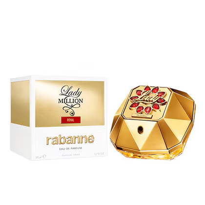 Lady Million Royal, an expression of defiant femininity by Rabanne. This delicious fruity floral fragrance is an audacious expression of glamourous sensuality, that frees your authentic self. Inspired by the iconic codes of Lady Million, the Lady Million Royal bottle embraces the couture diamond shape as a symbol of breath-taking beauty and desire. Reimagined with a red floral design, it mirrors the many facets of femininity, bringing a twist of irreverent fun. Claim your stage, you’re the queen.