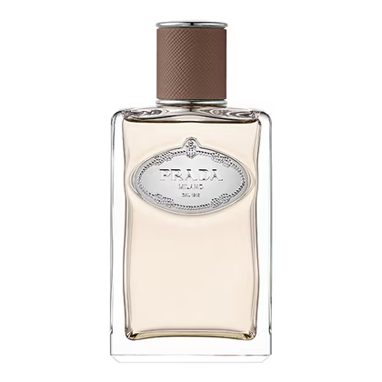 The luxurious bottle of Infusion de Vanille is highlighted in a brown-tinted hue, evoking the fusion of the signature ingredient in the fragrance. The rich brown cap in iconic Saffiano symbolizes the vanilla and the sensuality of the fragrance.