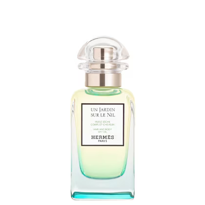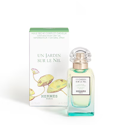 Un Jardin sur le Nil dry oil is quickly absorbed by the hair and caresses the skin with an enveloping veil. The hair is delicately fragranced, while the skin is soft and satiny, with no oily finish.